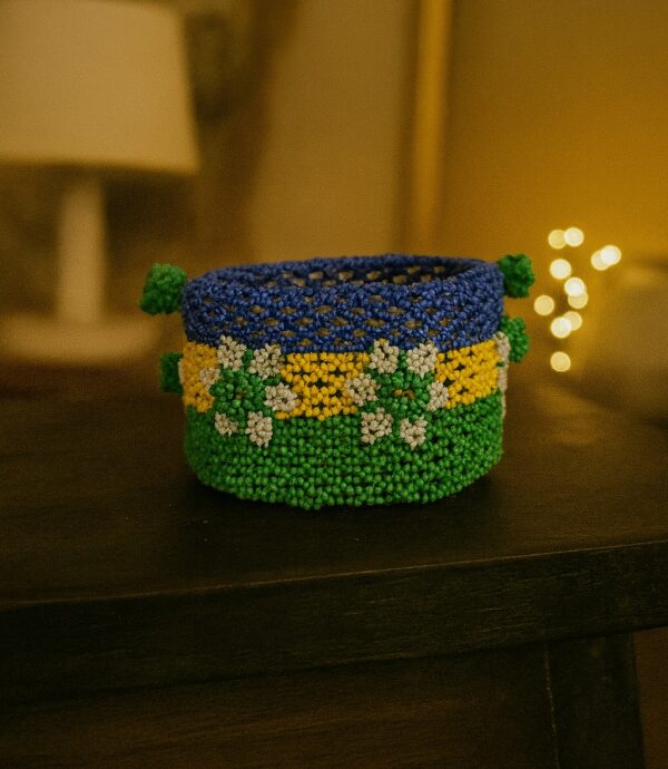 Dit decoratieve mandje van kralen met hengsel is een prachtige toevoeging aan elk interieur. Het mandje is handgemaakt en bestaat uit duurzame en hoogwaardige materialen. De kralen zijn zorgvuldig geregen en vormen een mooi patroon op het mandje. Het hengsel maakt het gemakkelijk om het mandje te verplaatsen of op te hangen. Gebruik dit mandje om kleine spulletjes in op te bergen, zoals sleutels, sieraden of andere kleine accessoires. Het mandje voegt een vleugje stijl en elegantie toe aan elke kamer en is een echte eyecatcher. Met dit decoratieve mandje van kralen met hengsel creëer je een gezellige en sfeervolle sfeer in huis.