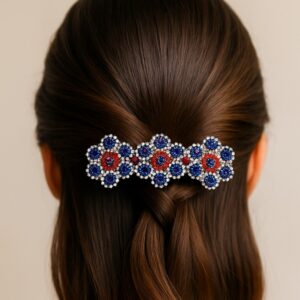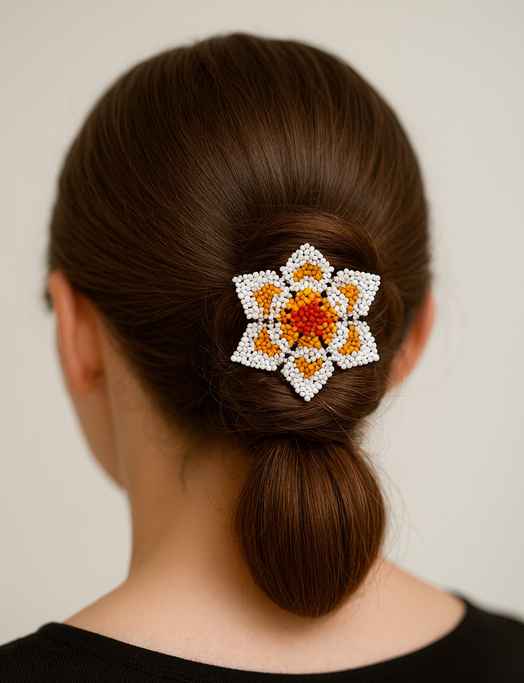 De haarclip bloem is een prachtige accessoire voor in het haar. De bloem is gemaakt van kwalitatieve kralen. De clip is stevig en gemakkelijk te bevestigen in het haar. Of je nu een feestelijke look wilt creëren of gewoon wat extra flair aan je kapsel wilt toevoegen, de haarclip bloem is een perfecte keuze. Met deze bloem in je haar zul je zeker de show stelen!