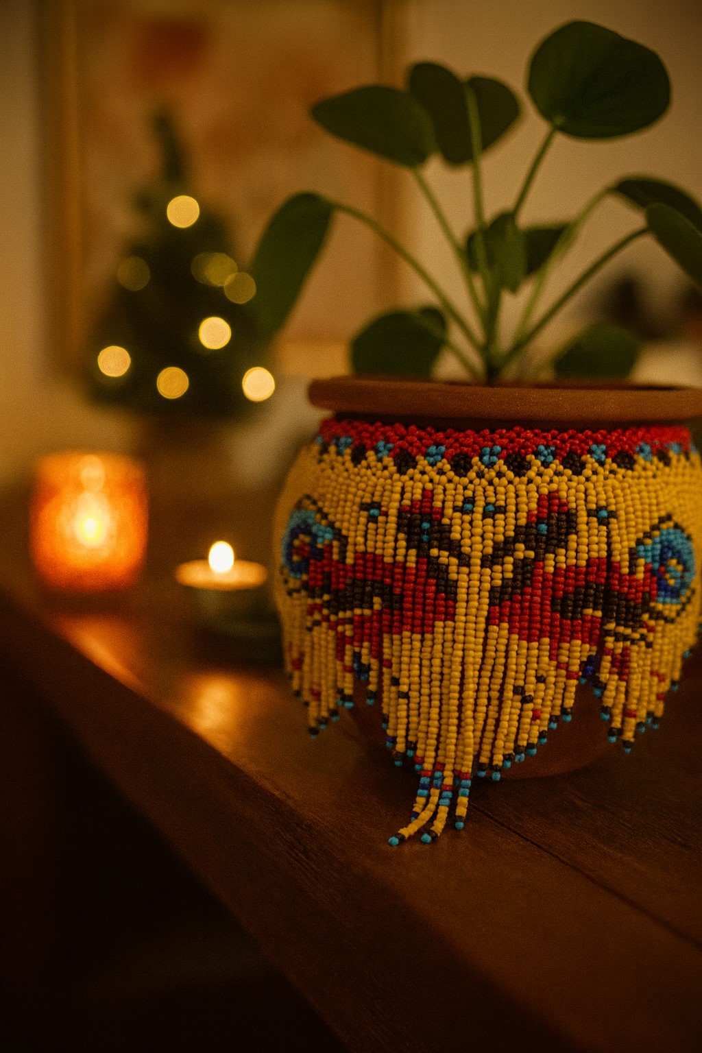 Kalebas met kralen versiering - Unieke decoratie voor in huis