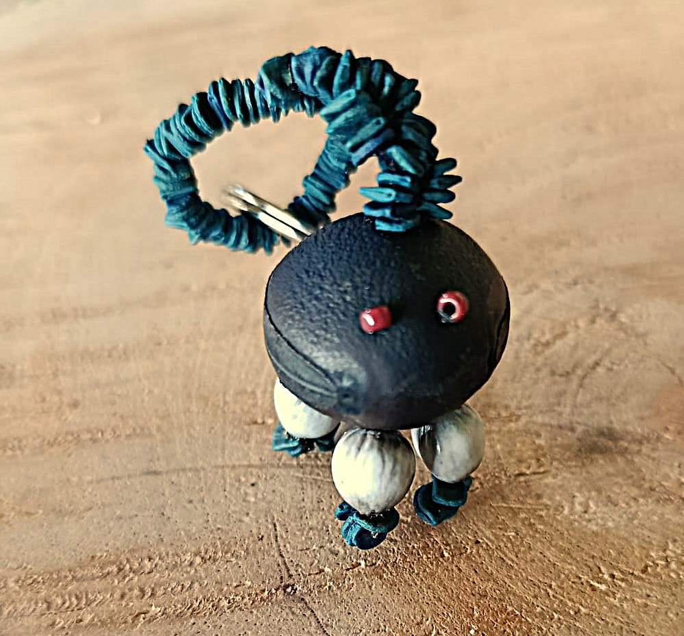 Sleutelbewakertjes gemaakt van natuurlijke zaden uit de Amazone.