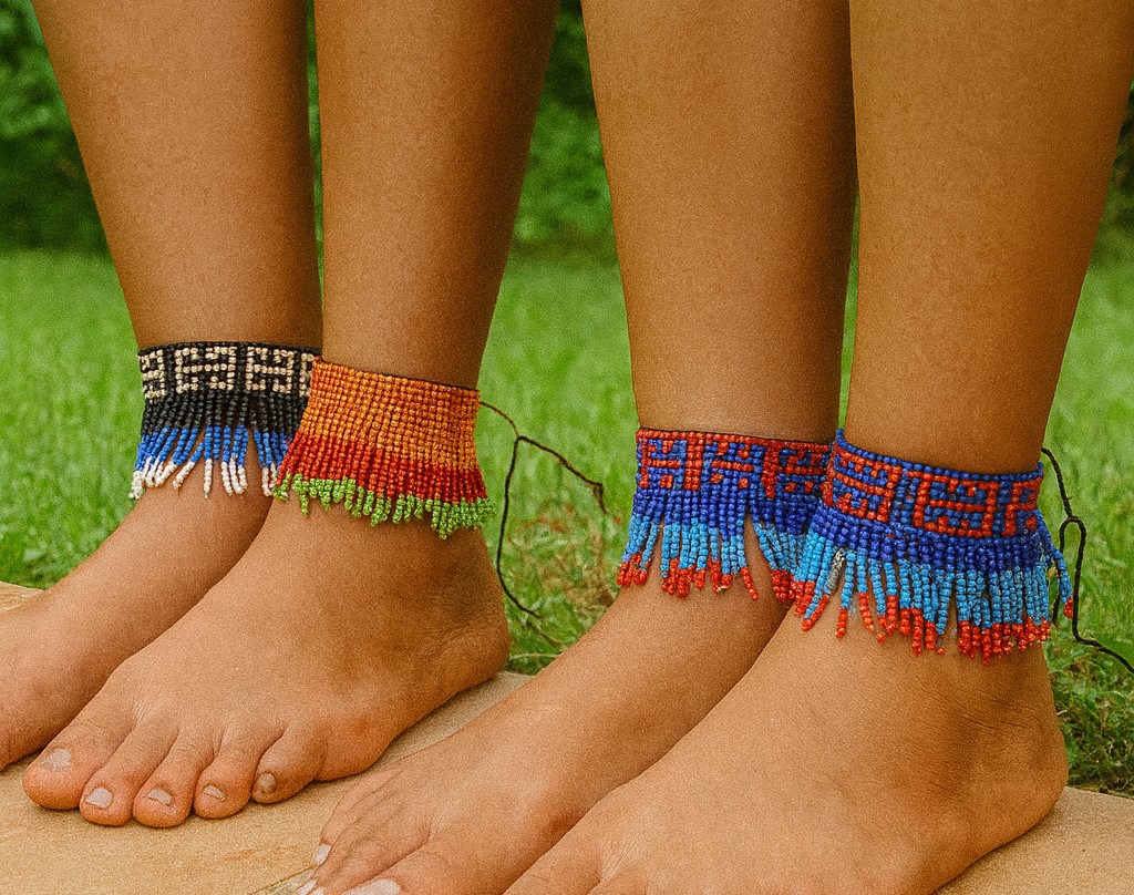 De traditionele enkelbandjes zijn handgemaakt en verkrijgbaar in vele kleurencombinaties. Ze zijn gemaakt van hoogwaardige kralen. De enkelbandjes zijn verstelbaar door een touwsluiting en passen daardoor om elke enkel. Ze zijn perfect voor zomerse dagen op het strand of bij festivals. De kleurencombinaties variëren van vrolijke en felle kleuren tot meer neutrale en natuurlijke tinten. De enkelbandjes zijn lichtgewicht en comfortabel om te dragen. Ze voegen een speelse en bohemien touch toe aan elke outfit. Met deze traditionele enkelbandjes maak je jouw zomerse look helemaal compleet.