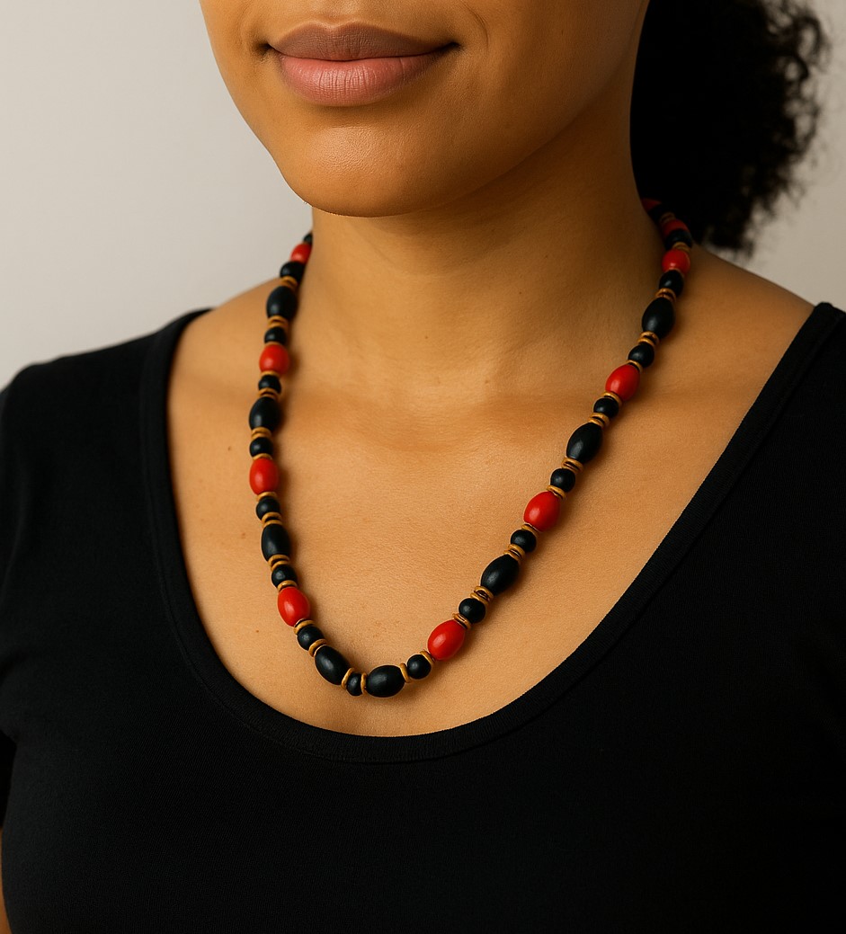Este colar elegante é feito à mão com sementes de kokrikri e mara mara da Amazônia. As sementes são cuidadosamente selecionadas e enfiadas para criar uma joia linda, perfeita para qualquer ocasião. As cores e texturas naturais das sementes dão ao colar uma aparência única que certamente chamará a atenção. Graças aos materiais sustentáveis e ao artesanato, este colar não é apenas bonito, mas também ecológico. Adicione um toque de beleza natural ao seu visual com este colar maravilhoso de sementes de kokrikri e mara mara.